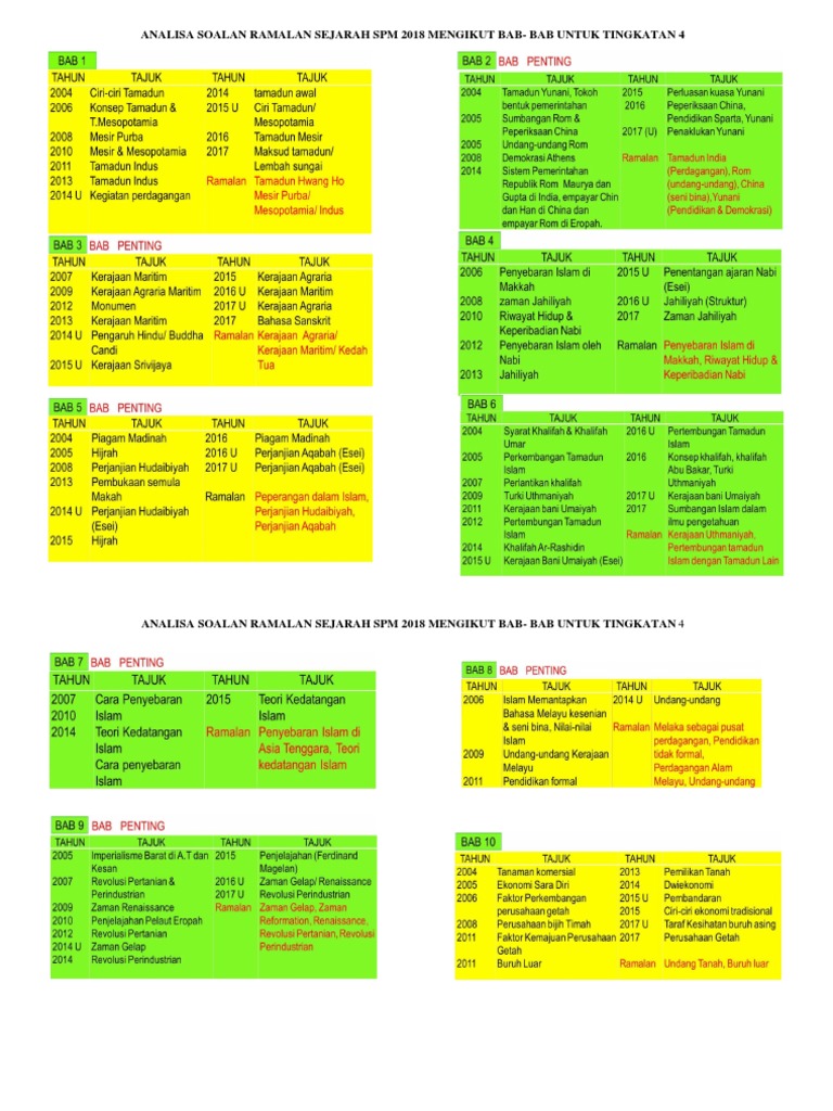 Analisa Soalan Ramalan Sejarah Spm 2018 Mengikut Bab Pdf
